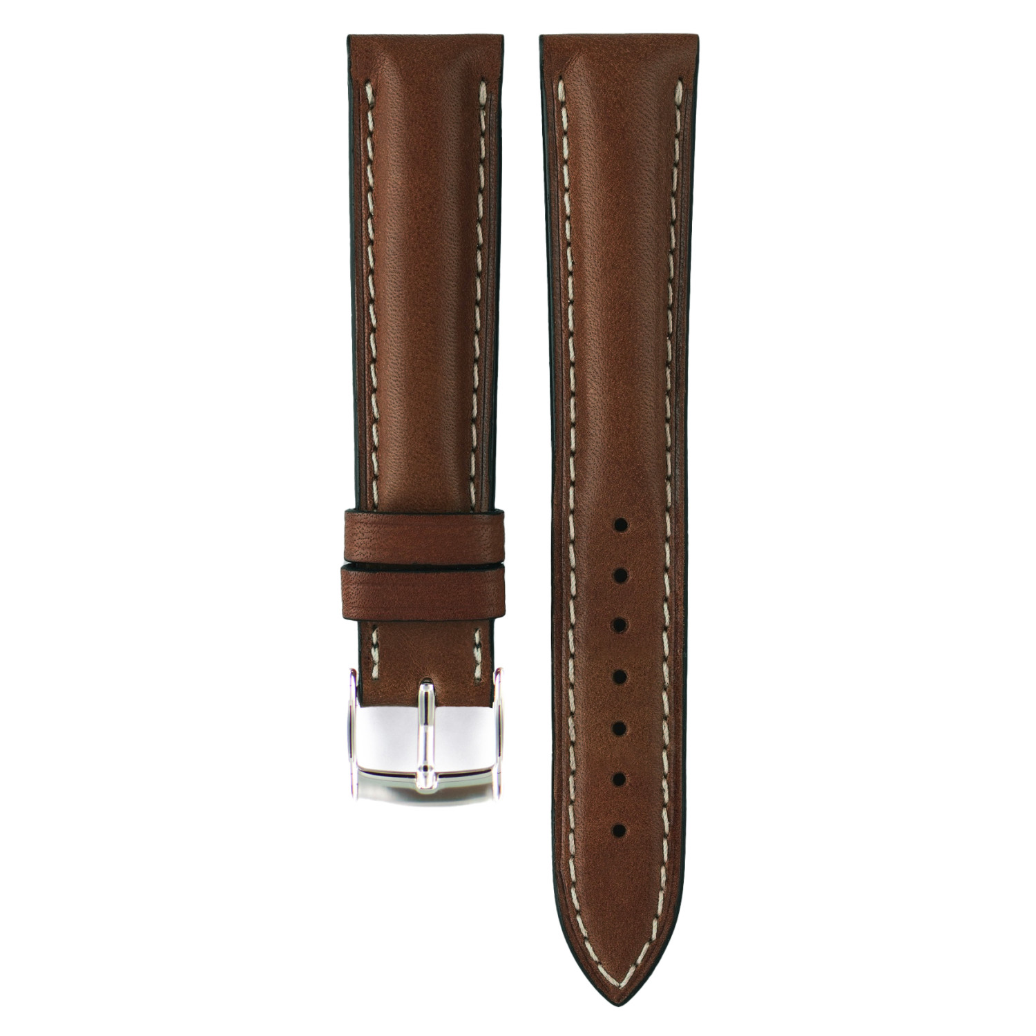 À la fois pratique et élégant, ce bracelet de montre marron foncé se distingue par ses coutures écrues et son cuir pull up au design bombé. Fabriqué à la main en France à partir de cuir de veau d’Aubrac, il offre des finitions soignées et affirme un style résolument sportif.